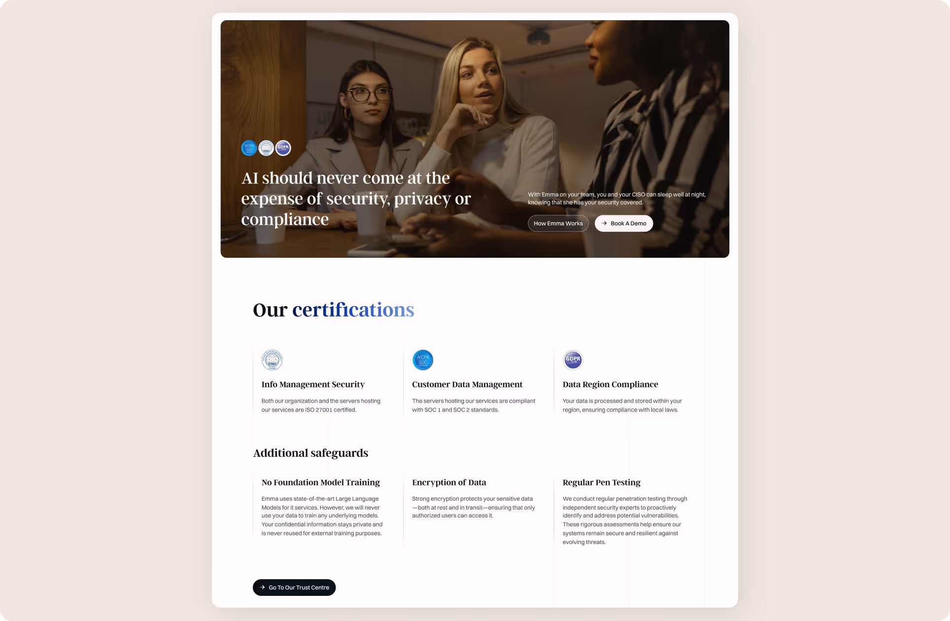 Emma Legal came fresh from VC funding, so the first step was building a clear strategy. I worked with the founders to understand the product, target users, and investor expectations, then shaped a brand identity that balanced authority with approachability. This led to the choice of a serif font paired with clean layouts, a royal blue palette to signal trust, and gold accents to add a sense of exclusivity.